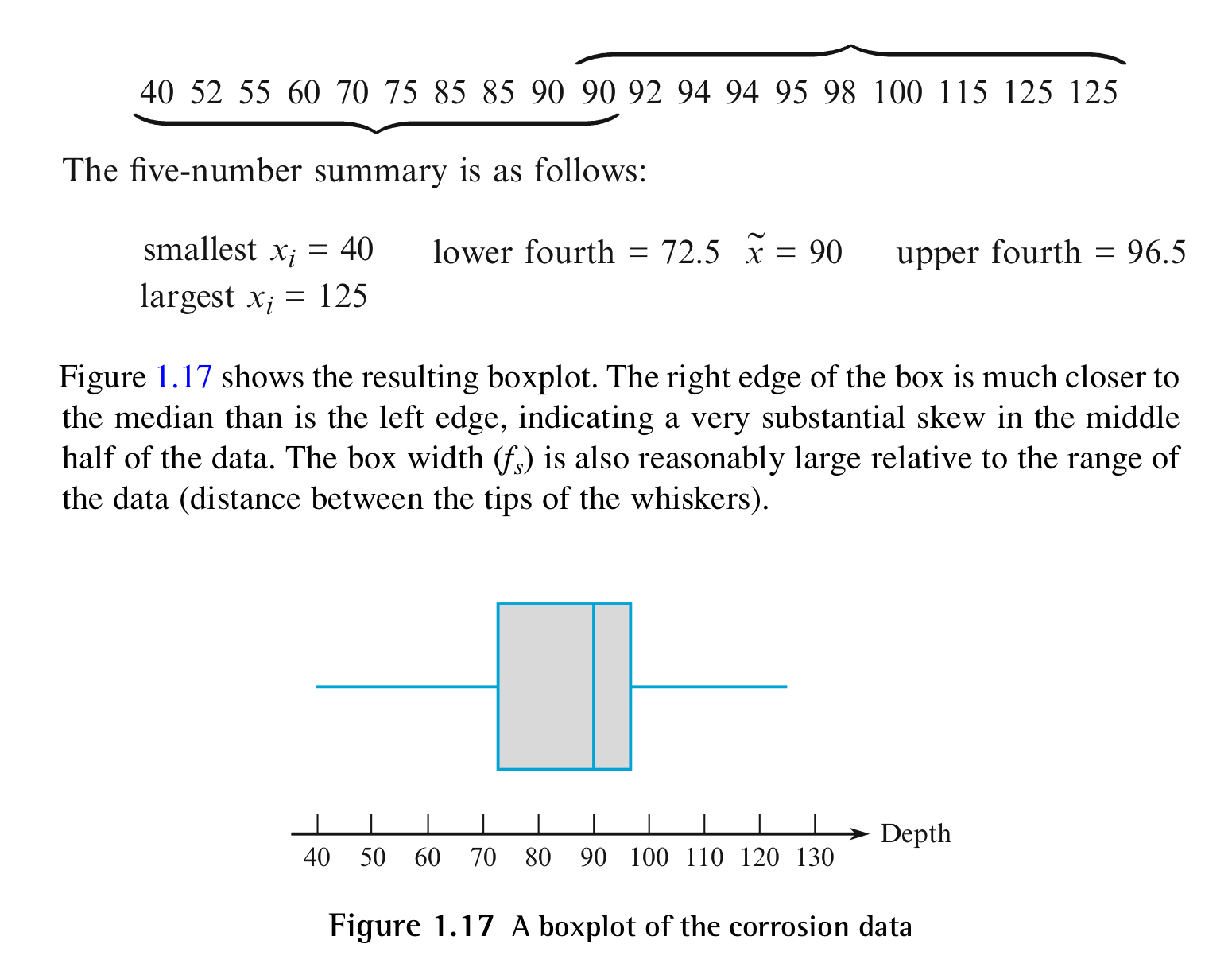- Lower Fourth (Q1): 하위 25% 지점의 중앙값