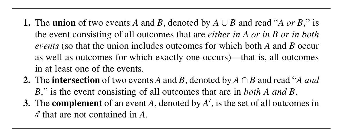 사건은 결국 집합이기 때문에, 집합 연산을 통해 사건 간 관계를 표현할 수 있다.