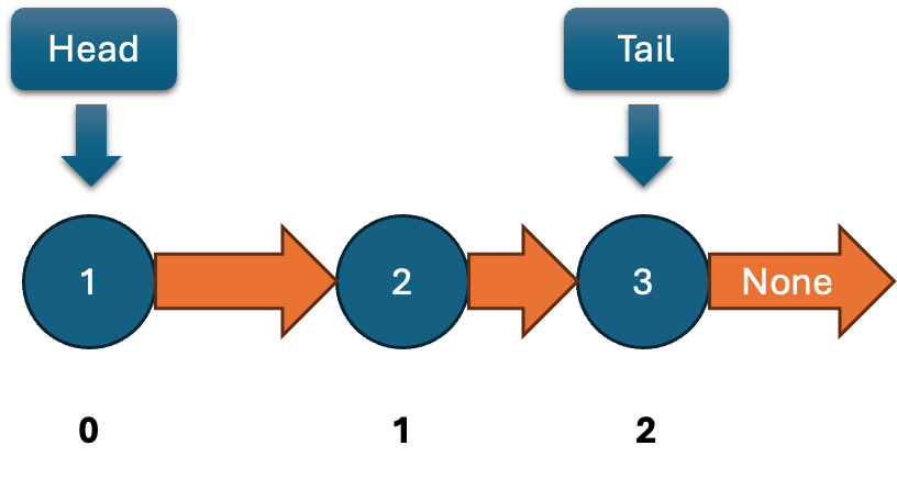 현재 리스트의 상태는 위와 같습니다. -1은 유효한 인덱스가 아니므로, get 메서드는 인덱스 유효성 검사를 수행하고 None을 반환합니다. 리스트의 길이가 3이므로, 유효한 인덱스는 0, 1, 2입니다. 따라서 3도 유효하지 않은 인덱스입니다. 이 경우에도 None을 반환합니다.