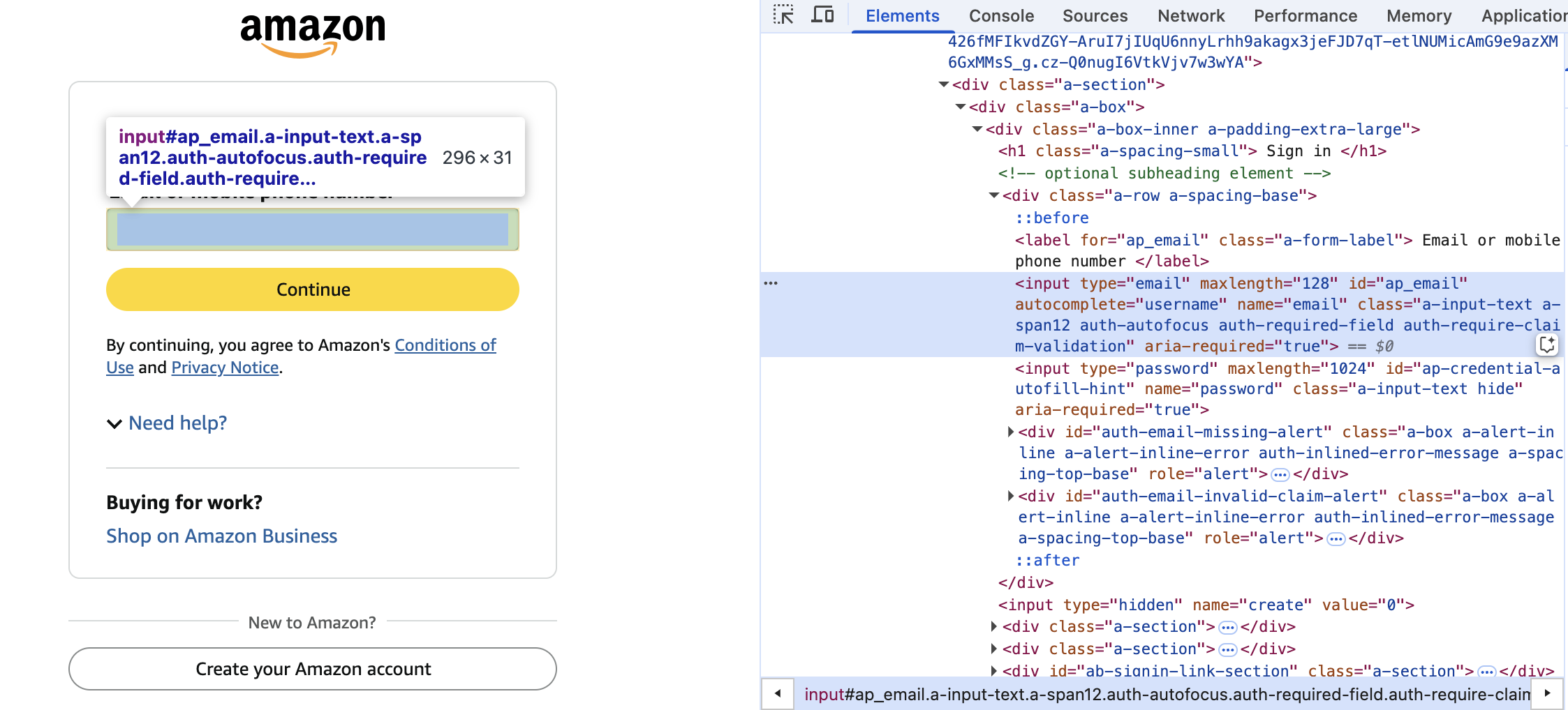 email_input = driver.find_element(By.ID, "ap_email") # Locate email input field