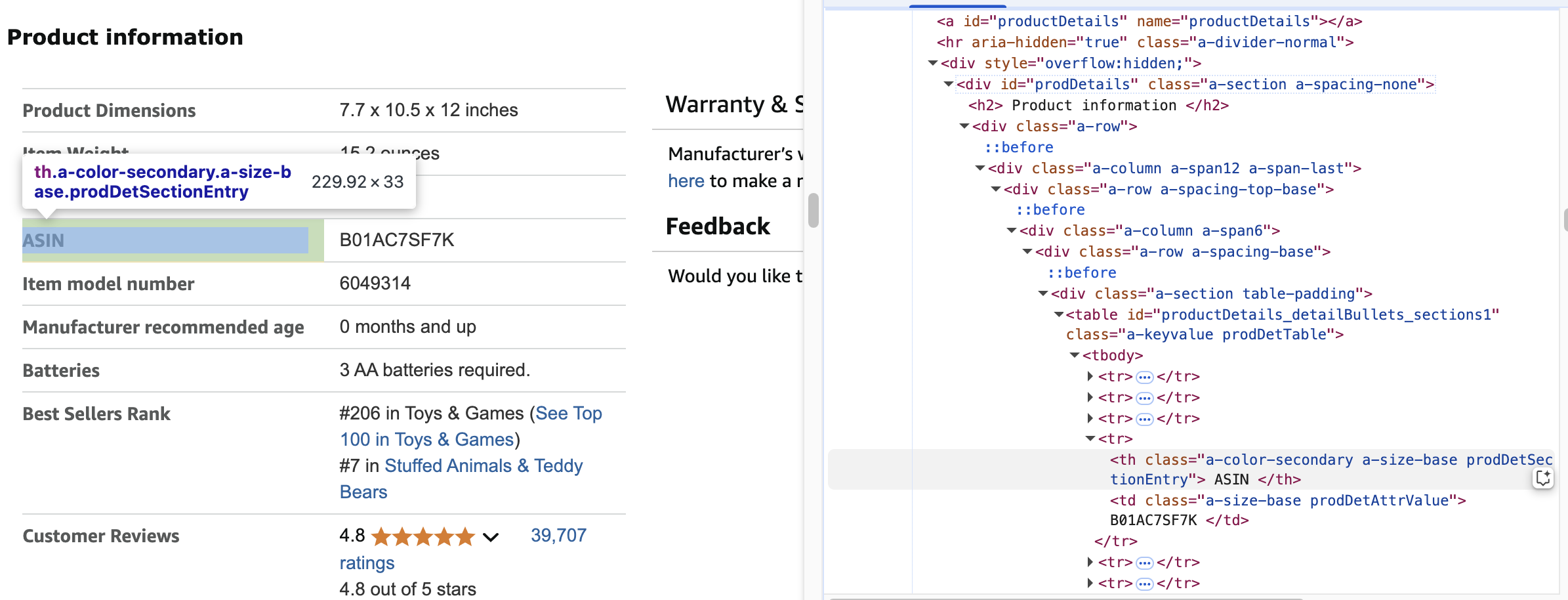 asin2 = driver.find_element(By.XPATH, "//th[text() = ' ASIN ' ]/following-sibling::td").text