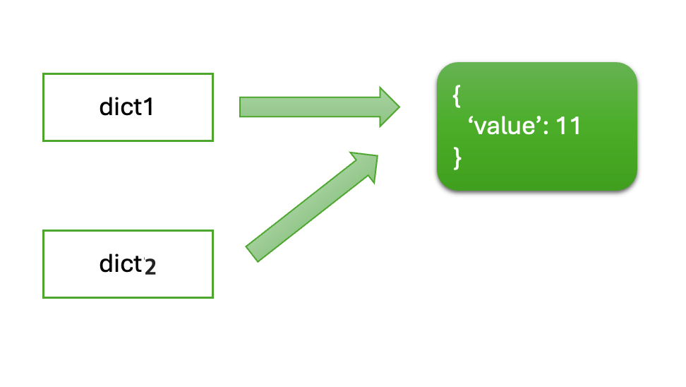 - dict2의 'value'를 22로 변경하면, dict1도 영향을 받습니다. 이는 두 변수가 같은 객체를 참조하기 때문입니다. 결과적으로 dict1과 dict2 모두 {'value': 22}로 업데이트됩니다.