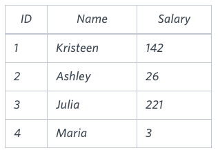 The table below shows the salaries without zeros as they were entered by Samantha: