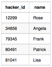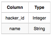 - Hackers: The hacker_id is the id of the hacker, and name is the name of the hacker.
